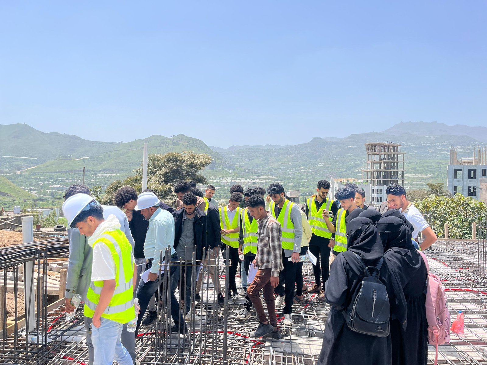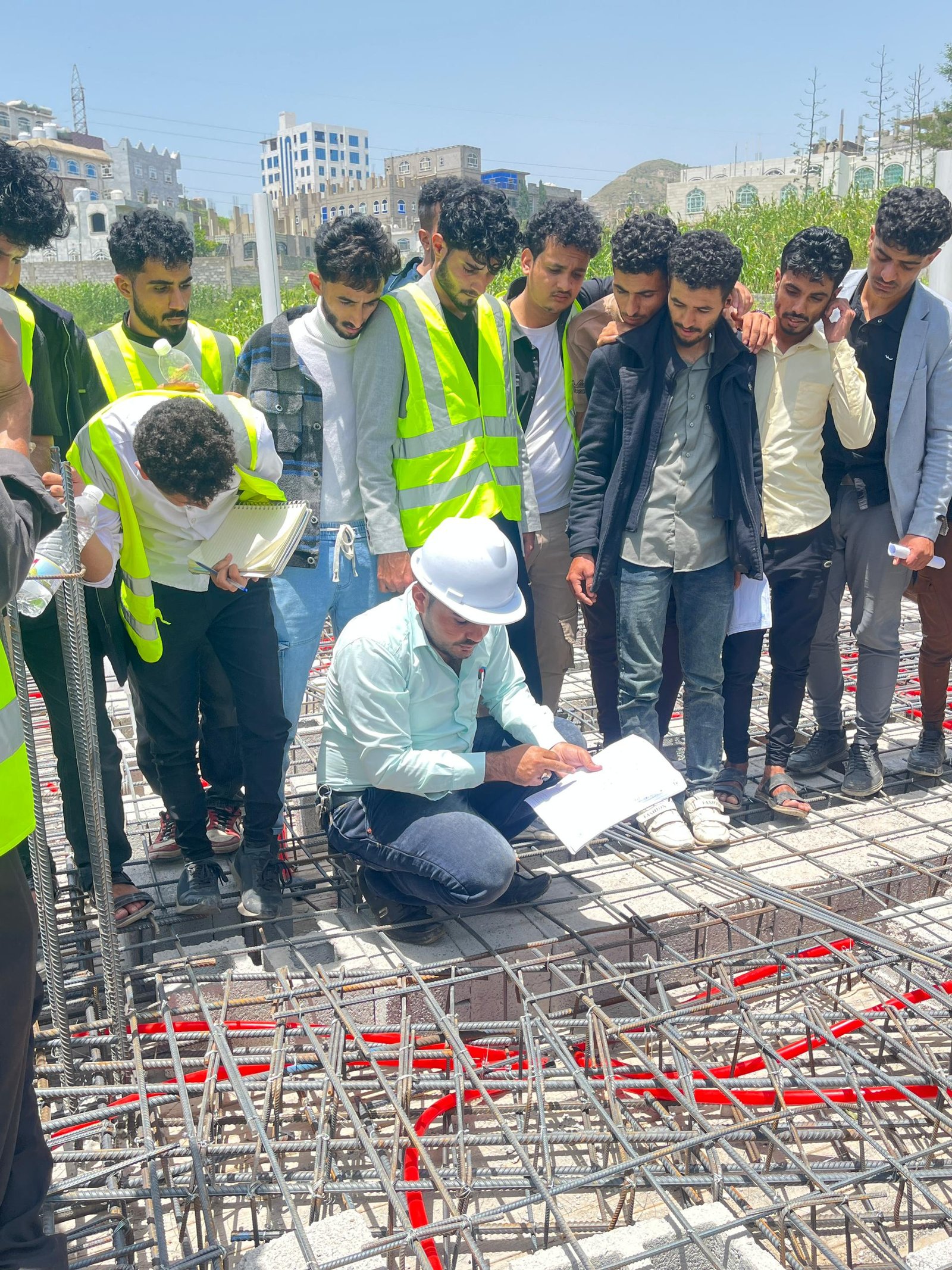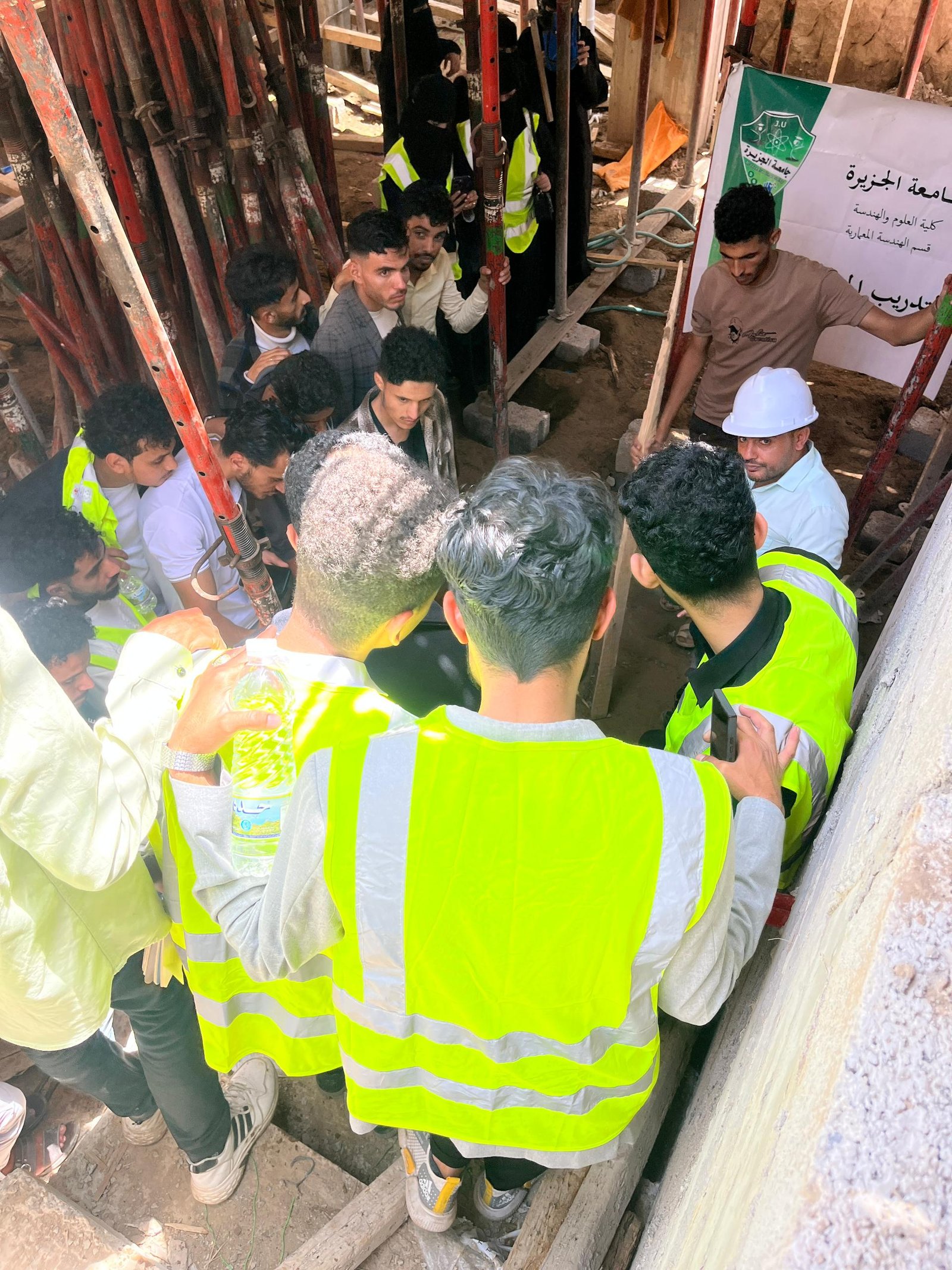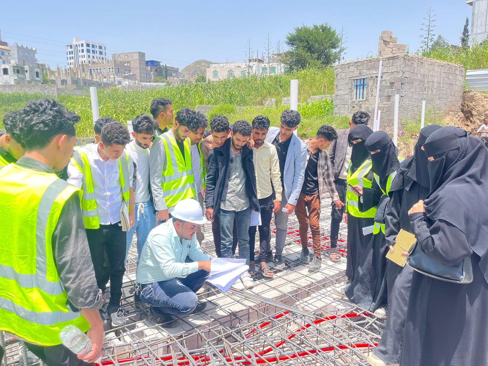 وفي الزيارة التي رافق الطلبة فيها الاستشاريون المهندس: عمرو الجبري منسق القسم، والمهندس: عيسى العرومي عضو هيئة التدريس، واللذان قدما شرحاً تفصيلياً للأعمال الجارية في موقع العمل والمتمثلة في أعمال النجارة والحدادة المسلحة لأحد أسطح المباني، وأعمال التأسيس للتمديدات الصحية والكهربية، بهدف تدريب الطلبة على استلام بنود الأعمال على أرض الواقع، وفقاً للمعاير والشروط الهندسية.