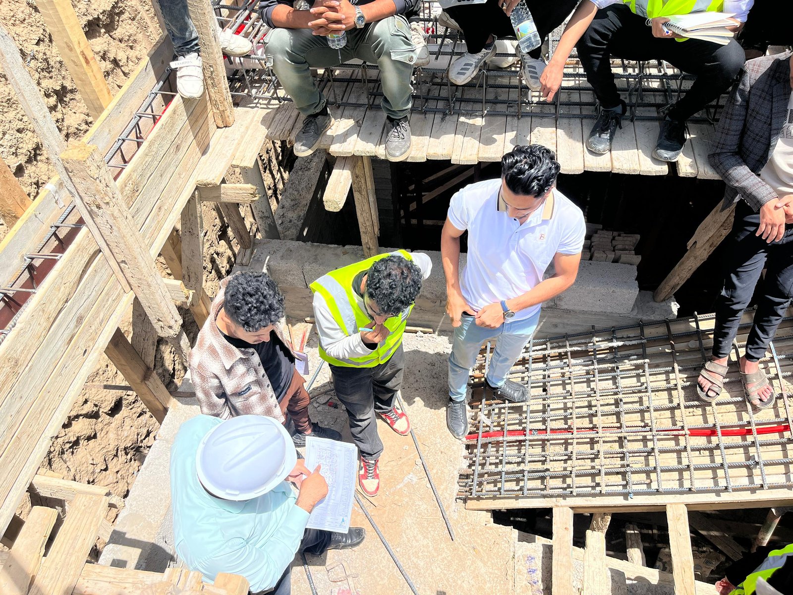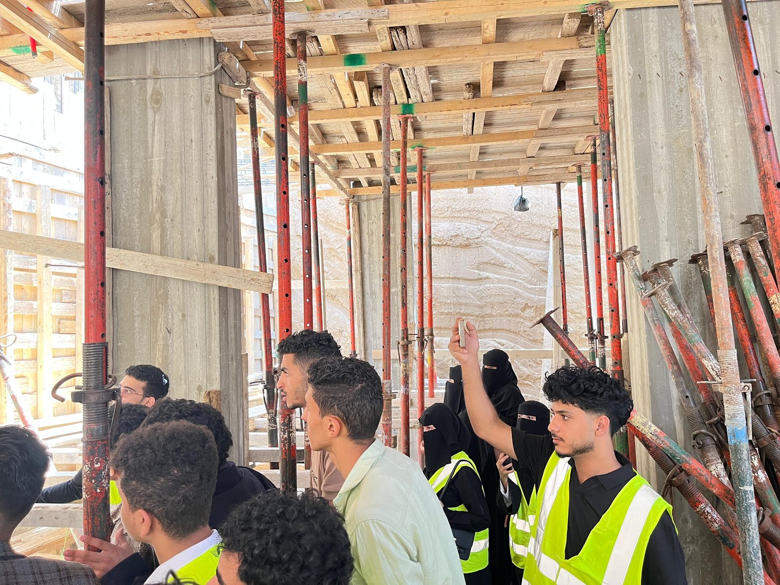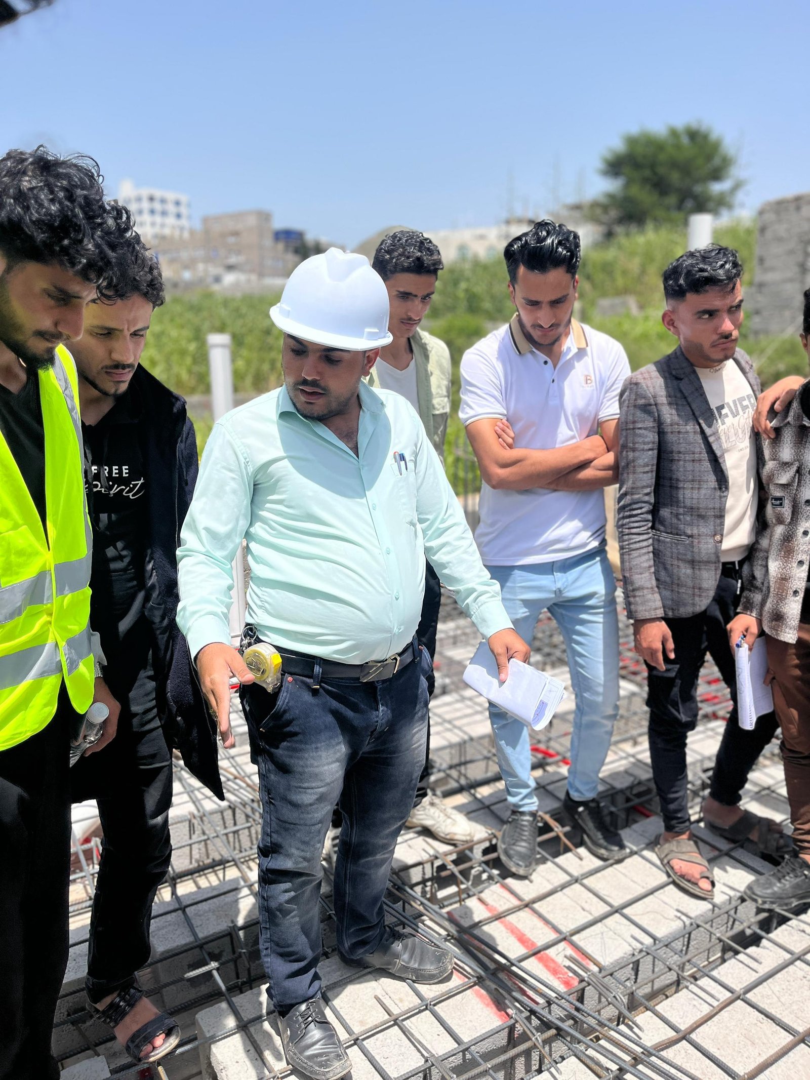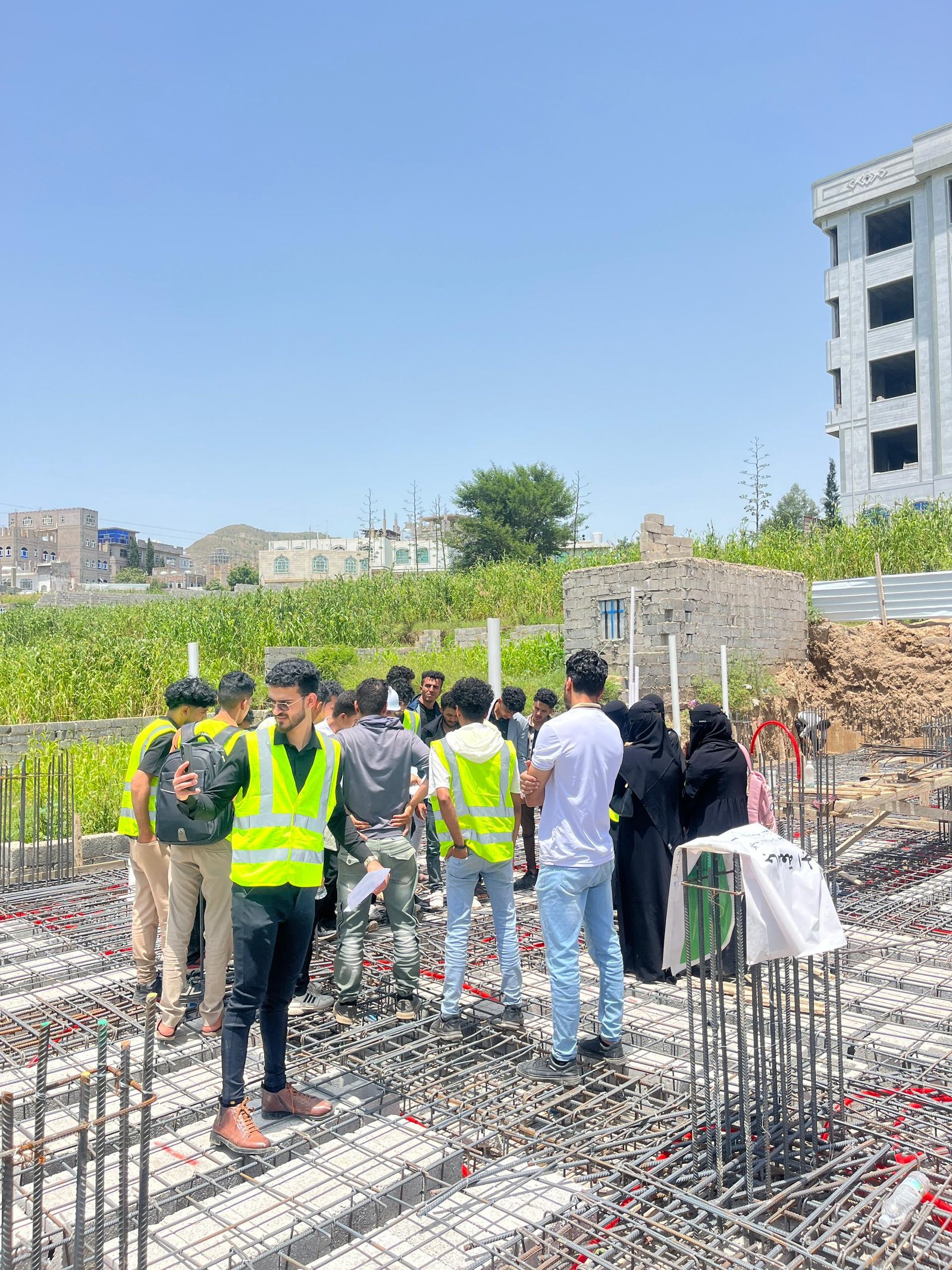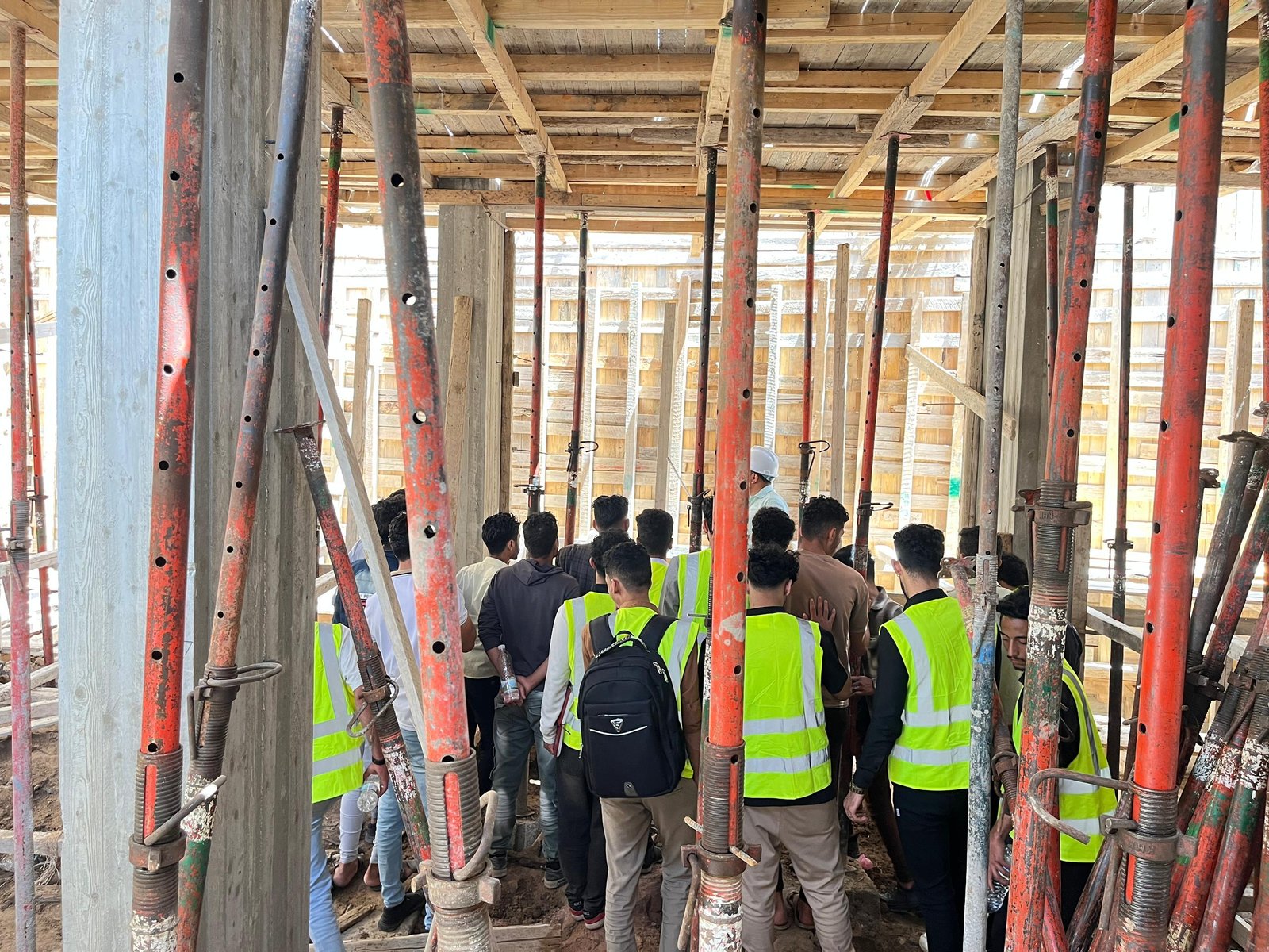 وفي الزيارة التي رافق الطلبة فيها الاستشاريون المهندس: عمرو الجبري منسق القسم، والمهندس: عيسى العرومي عضو هيئة التدريس، واللذان قدما شرحاً تفصيلياً للأعمال الجارية في موقع العمل والمتمثلة في أعمال النجارة والحدادة المسلحة لأحد أسطح المباني، وأعمال التأسيس للتمديدات الصحية والكهربية، بهدف تدريب الطلبة على استلام بنود الأعمال على أرض الواقع، وفقاً للمعاير والشروط الهندسية.