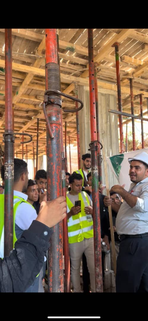 رافق الزيارة كل من المهندس عمرو الجبري منسق القسم، والمهندسة سمر البعداني عضو هيئة التدريس، حيث قدّما شرحاً وافياً ومفصلاً للطلبة. وتناولت الزيارة الجوانب الفنية للمواقع، مع التركيز على مكونات الشدّات الخشبية وحديد التسليح للأسقف، بالإضافة إلى الجدران الاستنادية، وكيفية تنفيذها واستلامها وفقاً للمعايير الهندسية.