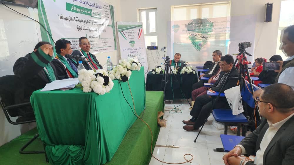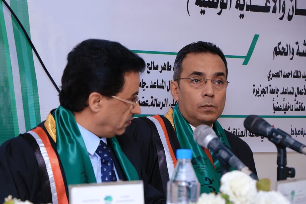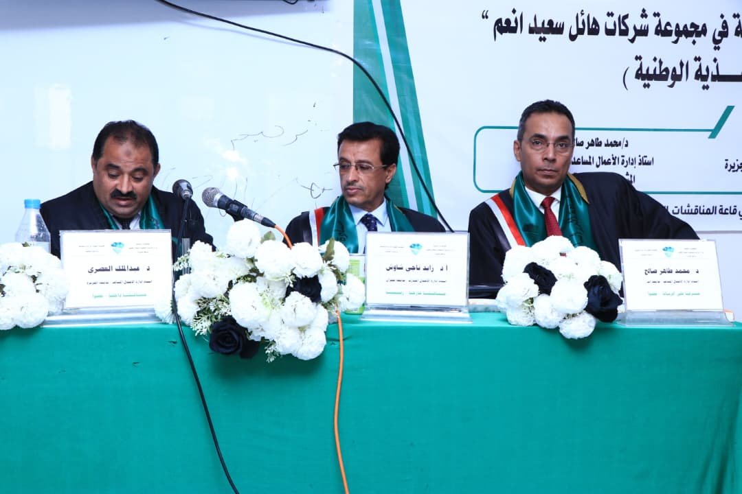 وعدد من أعضاء هيئة التدريس في جامعة الجزيرة، وزملاء الباحث، وأفراد أسرته، وجمع من المهتمين بالشأن الأكاديمي.