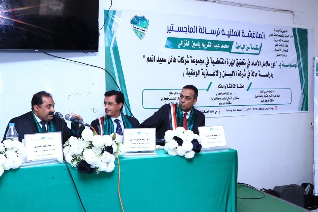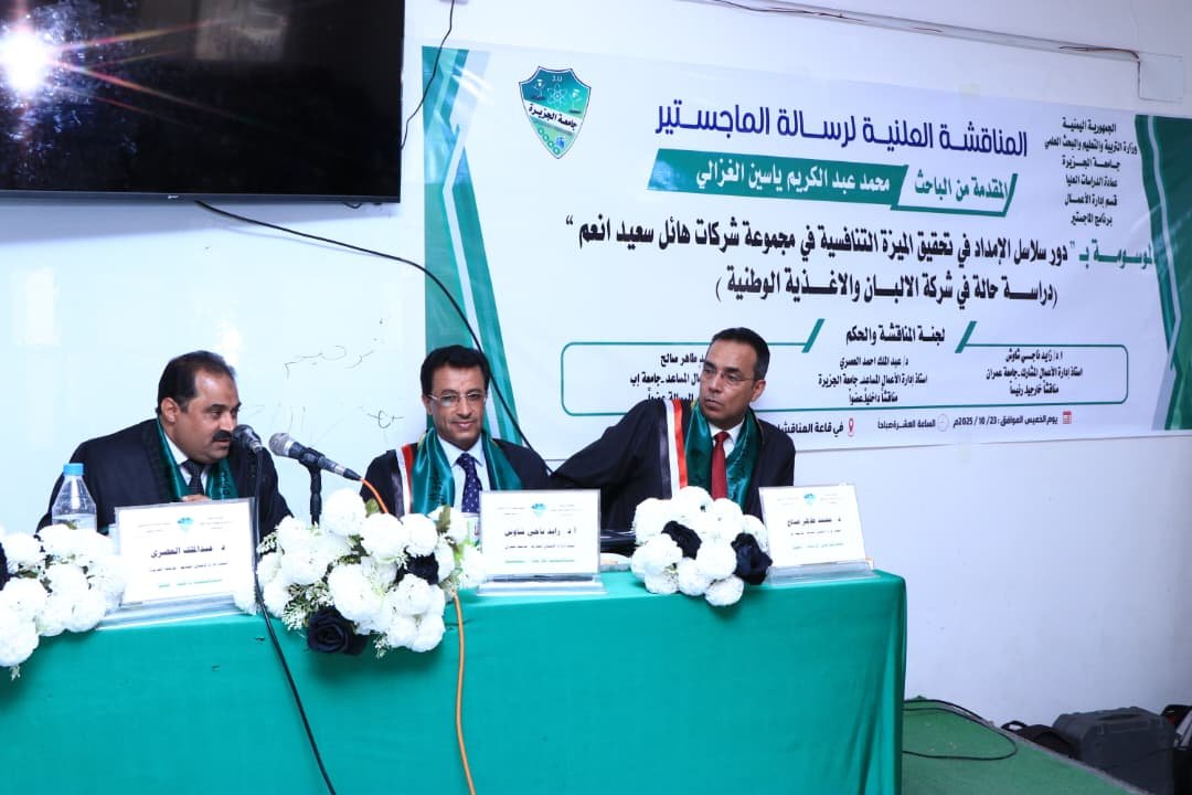 وأشادت اللجنة بجهود الباحث وما تميزت به الدراسة من منهجية علمية دقيقة، ونتائج مهمة لموضوع حيوي ومعاصر في القطاع الاقتصادي والصناعي، وهو دور سلاسل الإمداد في تعزيز الميزة التنافسية لشركات عملاقة مثل مجموعة شركات هائل سعيد أنعم.