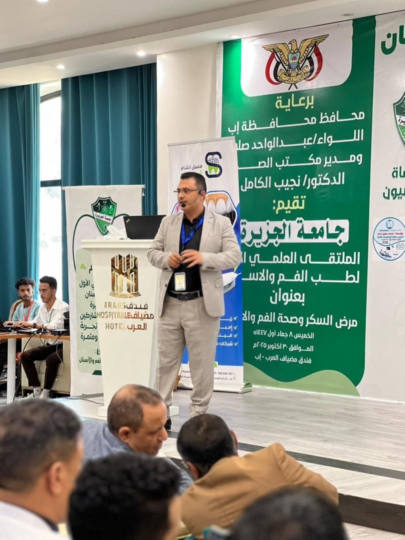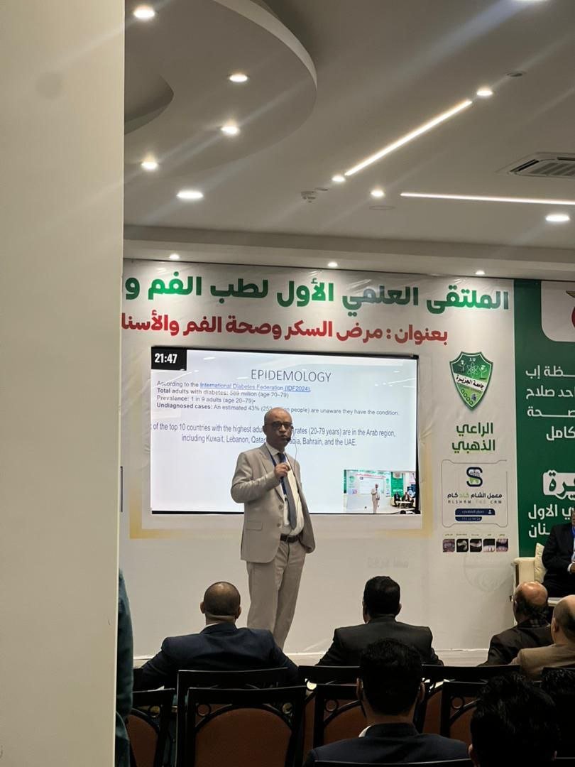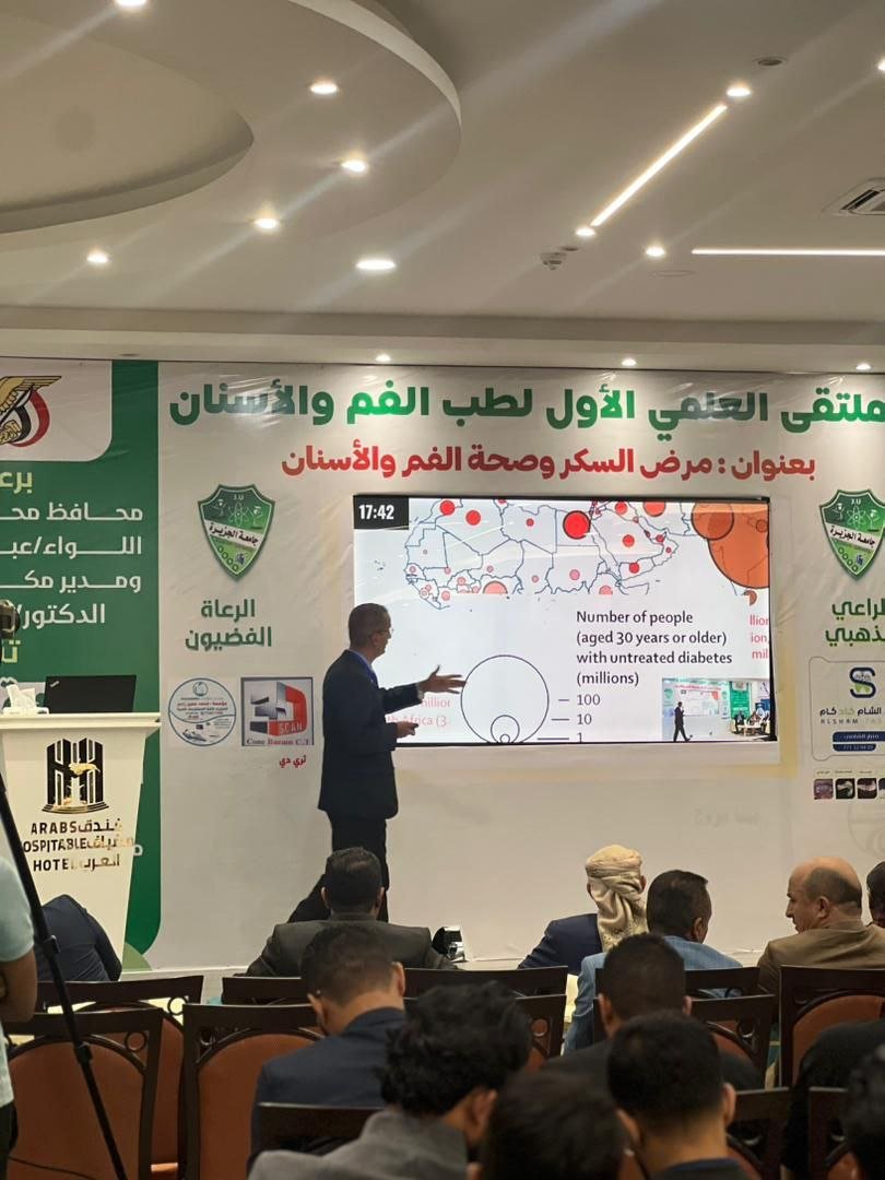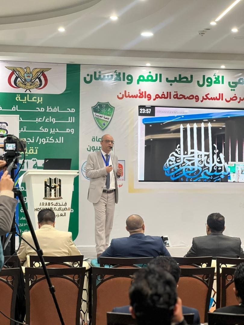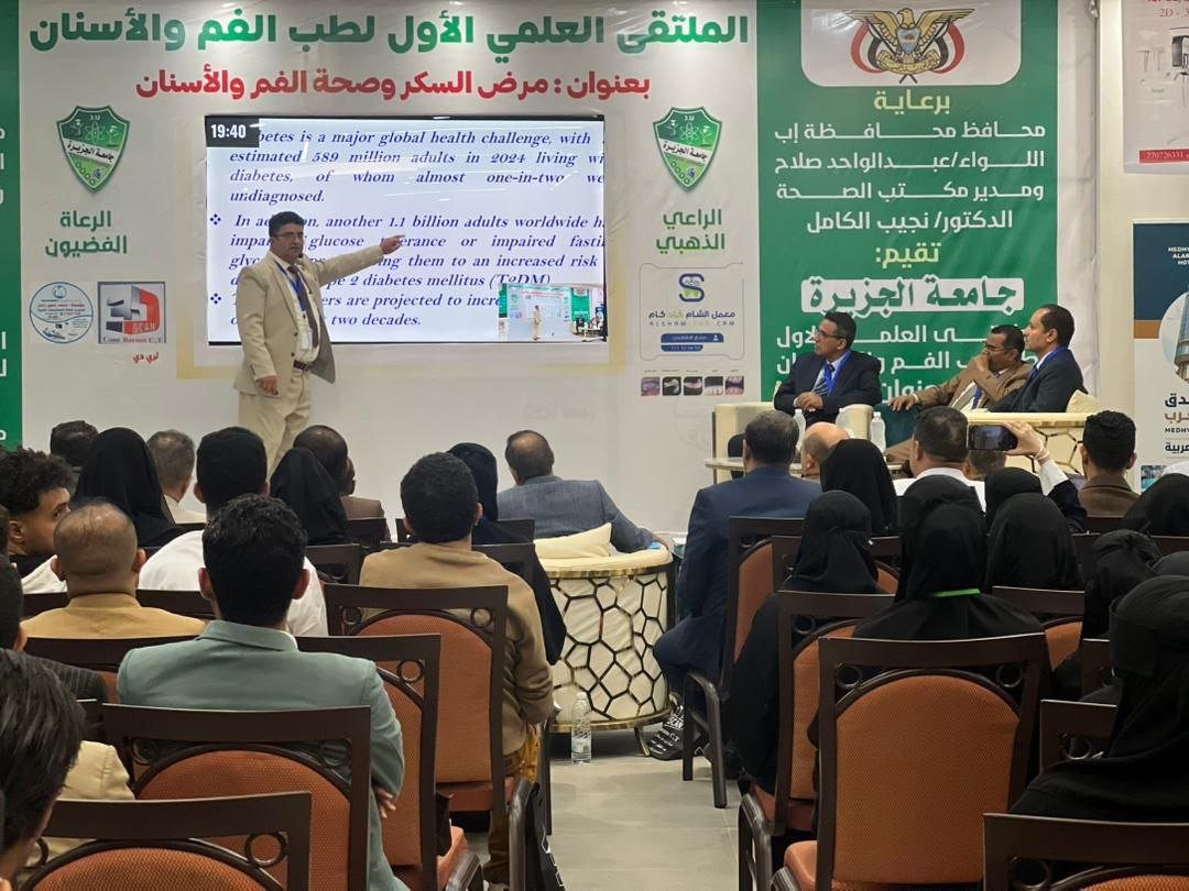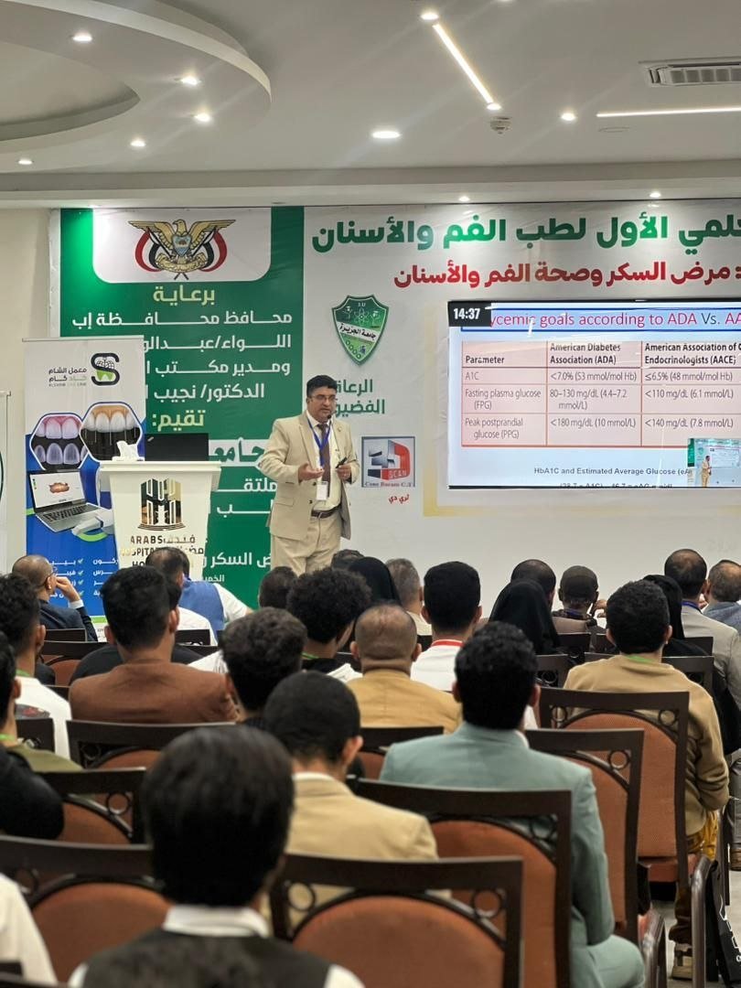 كما سلط أ. م. د/ عبدالكريم الشعري رئيس قسم طب وجراحة الفم والأسنان جامعة الجزيرة، الضوء  في محاضرته على "مرض السكري كعامل خطر رئيسي لالتهاب دواعم السن (اللثة): خطر لا يمكن إغفاله". وشارك أ. د/ عبدالله المطري - رئيس جامعة جبلة- بمحاضرة عن "تأثير مرض السكري على التئام الجروح الفموية". فيما بحث أ. م. د/ فيصل أبو لحوم "السكري والعدوى الفموية: التحديات وفرص العلاج". وتناول  أ.د/ محمد حلقوم "تأثير السكري على مدى وشدة العدوى الفكية الوجهية.