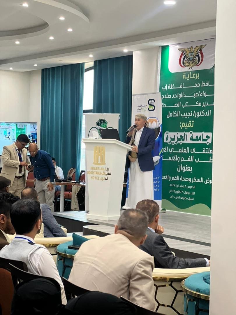 تحت رعاية محافظ محافظة إب اللواء/ عبدالواحد صلاح، ورئيس مجلس أمناء جامعةالجزيرة الدكتور/ عبدالرقيب صبيح، ومدير مكتب الصحة والبيئة الدكتور نجيب الكامل، انطلقت في محافظة إب، صباح  اليوم الخميس فعاليات "الملتقى العلمي الأول لطب الفم والأسنان" الذي نظمه قسم طب وجراحة الفم والأسنان في جامعة الجزيرة تحت شعار: "مرض السكر وصحة الفم والأسنان". وشهد الملتقى حضورًا رسميًا وأكاديميا وطبياً، تقدمه العميد/ أمين علي الورافي أمين عام المحافظة، والدكتور/ أشرف المتوكل وكيل المحافظة لشؤون الصحية، والدكتور/ نجيب الكامل مدير مكتب الصحة والبيئة، والأستاذ  الدكتور/ نشوان المجمر رئيس الجامعة،  الدكتور/ أحمد شرف الدين أمين عام مجلس الأمناء، والدكتور/ حسان شريان رئيس الجامعة الوطنية.